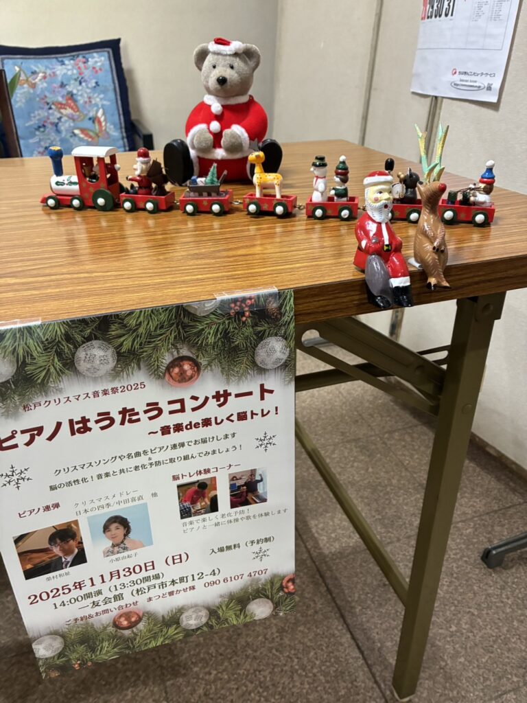 11月30日に松戸市一友会館で行った「ピアノはうたうコンサート~音楽de楽しく脳トレ!~」