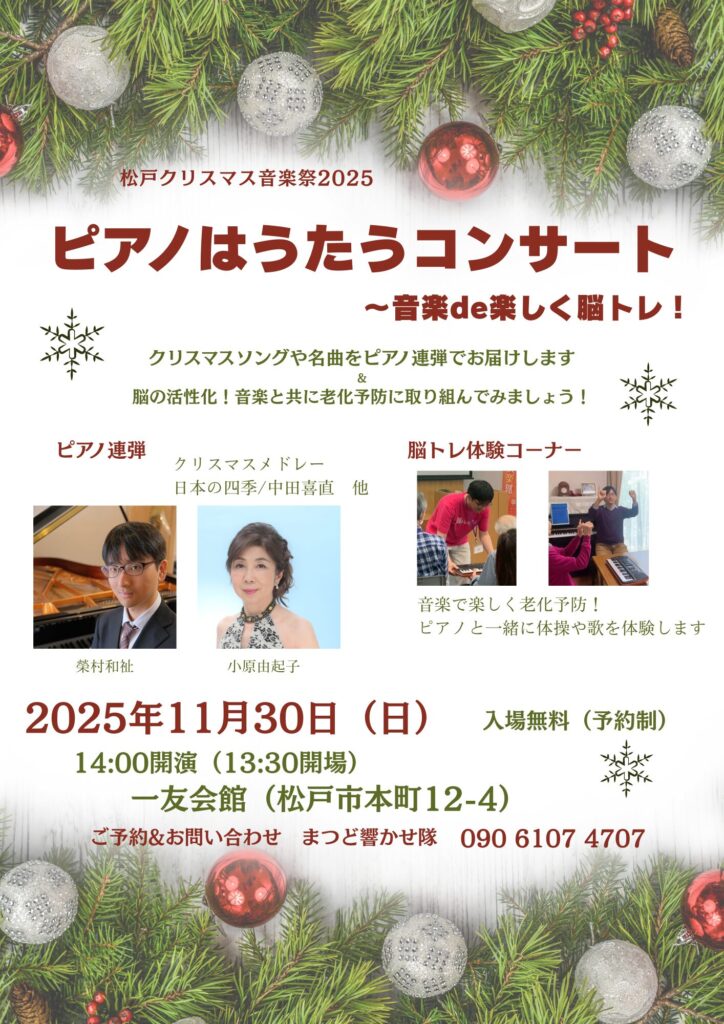 松戸クリスマス音楽祭にて脳トレを交えた演奏会をします!